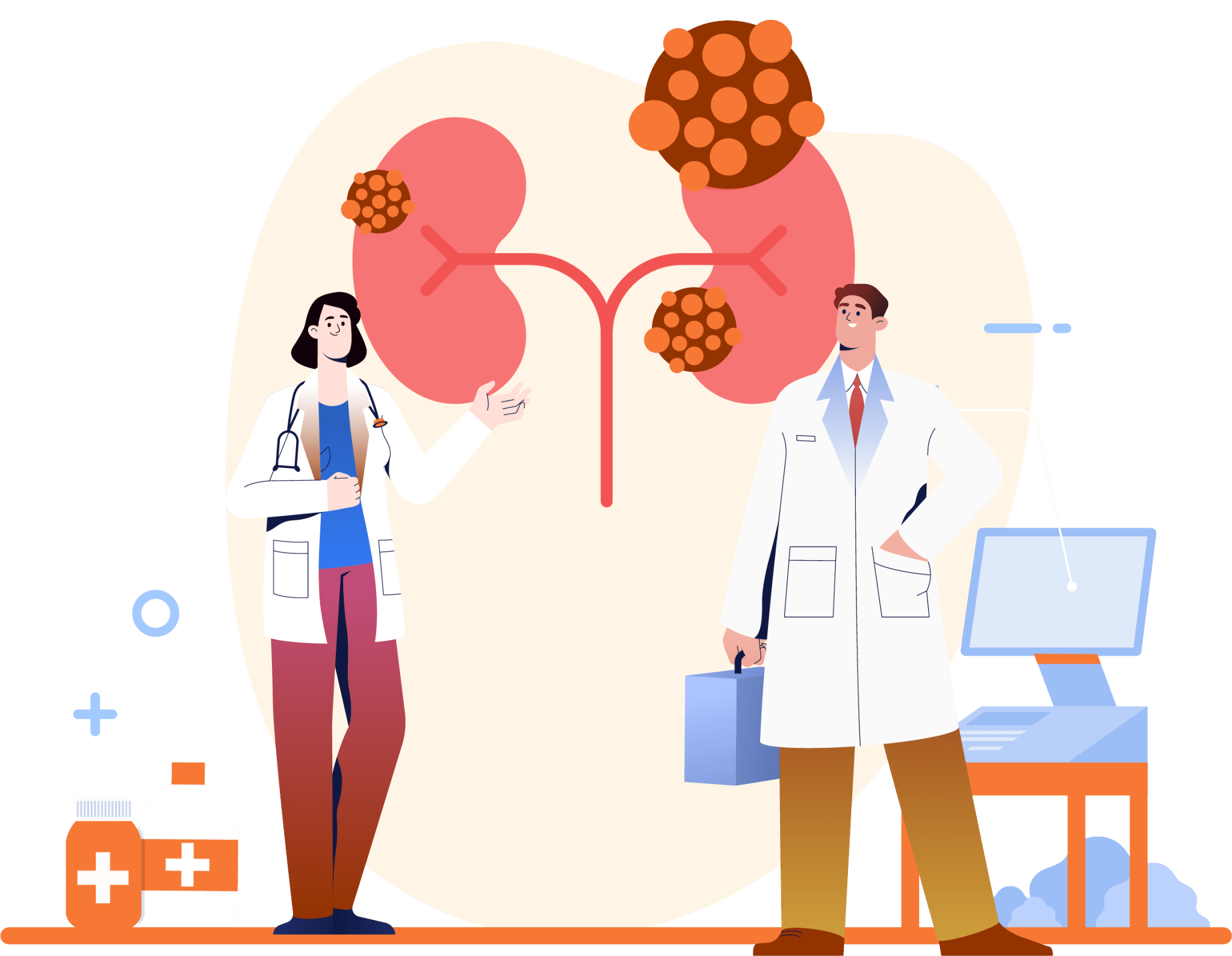 1. National Kidney Foundation. Kidney cancer. Available at: www.kidney.org/kidney-topics/kidney-cancer. Accessed Sep 2024. 2.Pandey J, Syed W. Renal cancer. Available at: www.ncbi.nlm.nih.gov/books/NBK558975/. Accessed Sep 2024. 3. American Cancer Society. What is kidney cancer? Available at: www.cancer.org/cancer/types/kidney-cancer/about/what-is-kidney-cancer.html. Accessed Sep 2024. 4. Uhlig J, et al. Renal sarcomas: Epidemiology, treatment and outcomes. Journal of Clinical Oncology 2021. 39:6. 5. NCBI. Wilms Tumor. Available at: https://www.ncbi.nlm.nih.gov/books/NBK442004/. Accessed on Apr 2025. 6. Hong Kong Cancer Registry, Hospital Authority. Leading cancer sites in Hong Kong in 2022. Available at: www3.ha.org.hk/cancereg/pdf/top10/rank_2022.pdf. Accessed Jan 2025. 7. Hong Kong Cancer Registry, Hospital Authority. Hong Kong cancer statistics: Incidence, both sex, broad age group, 2003–2022, kidney and other urinary organs except bladder, by year and age group. Available at: www3.ha.org.hk/cancereg/allages.asp. Accessed Jan 2025. 8. Jani C, et al. Sci Rep 2022;12:22368. 9.NCBI. Renal Cancer. Available at: https://www.ncbi.nlm.nih.gov/books/NBK558975/. Accessed on Apr 2025. 10. Cirllo L, et al. Global epidemiology of kidney cancer. Nephrol Dial Transplant 2024. 39:920-928. 11. American Cancer Society. Risk factors for kidney cancer. Available at: www.cancer.org/cancer/types/kidney-cancer/causes-risks-prevention/risk-factors.html. Accessed Sep 2024. 12. Cancer Research UK. Risks and causes of kidney cancer. Available at: www.cancerresearchuk.org/about-cancer/kidney-cancer/risks-causes. Accessed Sep 2024. 13. American Cancer Society. Kidney cancer signs and symptoms. Available at:www.cancer.org/cancer/types/kidney-cancer/detection-diagnosis-staging/signs-and-symptoms.html. Accessed Sep 2024. 14. American Cancer Society. Kidney cancer stages. Available at: www.cancer.org/cancer/types/kidney-cancer/detection-diagnosis-staging/staging.html. Accessed Sep 2024. 15. Cancer Research UK. Tests for kidney cancer. Available at: www.cancerresearchuk.org/about-cancer/kidney-cancer/getting-diagnosed/tests-for-kidney-cancer. Accessed Sep 2024. 16. American Cancer Society. Tests for kidney cancer. Available at: www.cancer.org/cancer/types/kidney-cancer/detection-diagnosis-staging/how-diagnosed.html. Accessed Sep 2024. 17. NHS. Tests and next steps for kidney cancer. Available at: www.nhs.uk/conditions/kidney-cancer/tests-and-next-steps/. Accessed Sep 2024. 18. National Cancer Institute. Renal cell cancer treatment (PDQ®) – Patient version. Available at: www.cancer.gov/types/kidney/patient/kidney-treatment-pdq. Accessed Sep 2024.19. National Cancer Institute. Biomarker testing for cancer treatment. Available at: www.cancer.gov/about-cancer/treatment/types/biomarker-testing-cancer-treatment. Accessed Jan 2025. 20. Saliby RM, et al. Am Soc Clin Oncol Educ Book 2024;44:e430734. 21. American Cancer Society. Treatment of kidney cancer by stage. Available at: www.cancer.org/cancer/types/kidney-cancer/treating/by-stage.html. Accessed Sep 2024. 22. NCCN. NCCN Clinical Practice Guidelines in Oncology: Kidney cancer (version 2.2025 – September 6, 2024). Available at: 23. Martini A, et al. Neoadjuvant and adjuvant immunotherapy in renal cell carcinoma. World Journal of Urology 2021. 39(5):1369-1376. 24. Janowitz T, et al. Adjuvant Therapy in Renal Cell Carcinoma—Past, Present, and Future. Semin Oncol 2013. 40(4):482-91. 25. Cosso F, et al. Int J Mol Sci 2023;24:4243. 26. West H, Jin J. JAMA Oncol 2015;1:698. 27. Lalani AA, et al. Can Urol Assoc J 2023;17:E154-E163. 28. American Cancer Society. Health professionals who are part of a cancer care team. Available at: www.cancer.org/cancer/managing-cancer/finding-care/health-professionals-associated-with-cancer-care.html. Accessed Sep 2024. 29. Powles T, et al. Ann Oncol 2024;35:692-706. www.nccn.org/professionals/physician_gls/pdf/kidney.pdf. Accessed Sep 2024. 30. Garfield K, LaGrange CA. Renal cell cancer. Available at: www.ncbi.nlm.nih.gov/books/NBK470336/. Accessed Sep 2024. 31. Macmillan Cancer Support. Multidisciplinary team (MDT) for kidney cancer. Available at: www.macmillan.org.uk/cancer-information-and-support/kidney-cancer/mdt. Accessed Sep 2024. 32. Zeng Y, et al. J Multidiscip Healthc 2023;16:503-513. 33. Cancer Research UK. Life after surgery for kidney cancer. Available at: www.cancerresearchuk.org/about-cancer/kidney-cancer/living-with/daily-life. Accessed Sep 2024. 34. Kidney Cancer Association. Life with kidney cancer. Available at: www.kidneycancer.org/patients/living-with-kidney-cancer/. Accessed Sep 2024. 35. Macmillan Cancer Support. Recovery from treatment for kidney cancer. Available at: www.macmillan.org.uk/cancer-information-and-support/kidney-cancer/recovery-from-treatment-for-kidney-cancer. Accessed Sep 2024.